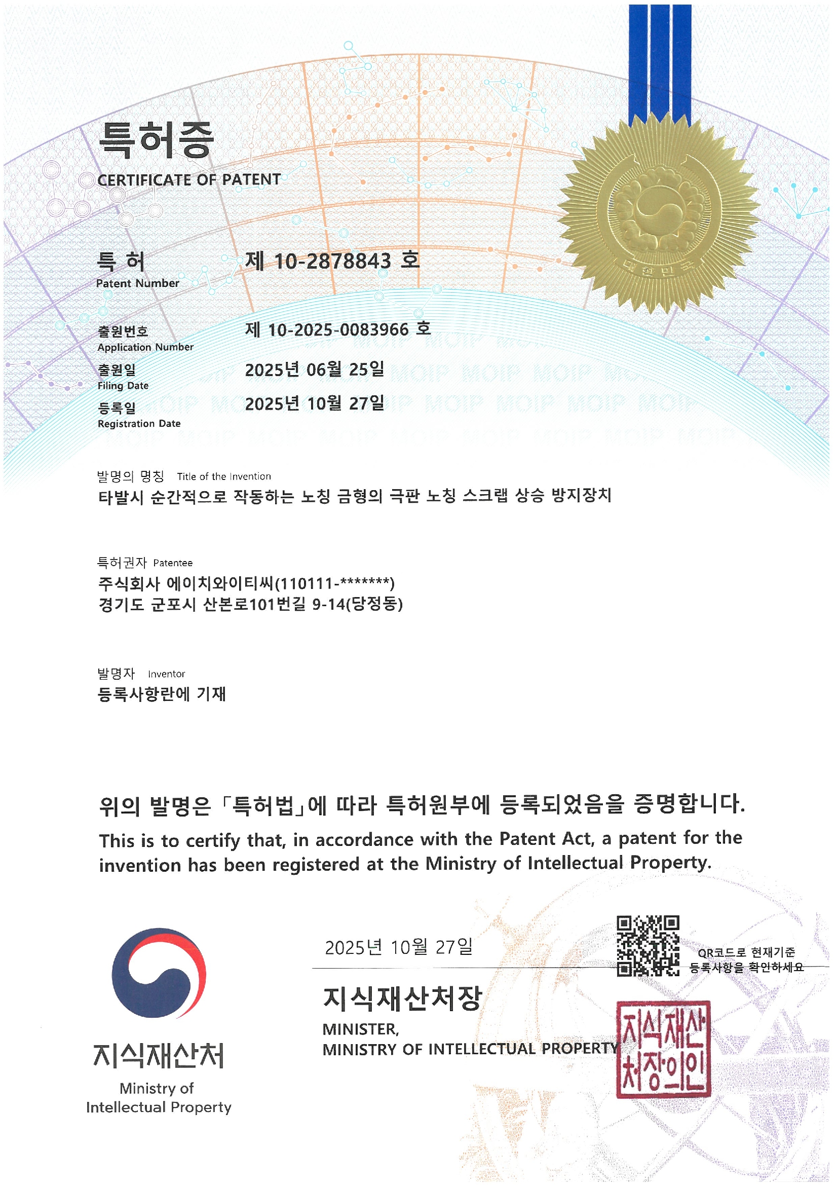 - 특허제 10-2878843호